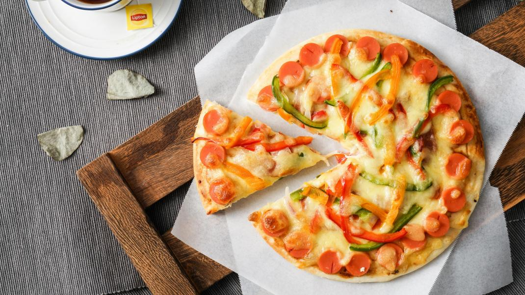 第八步:取出披薩,切成小塊就可以食用了,剛做好會很燙,要注意防護呀~