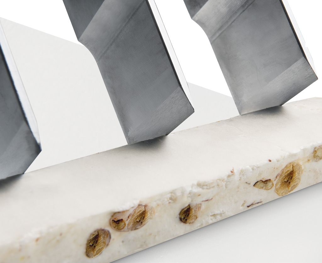 Cutting range is  wide. Sticky, soft and elastic food can be used.