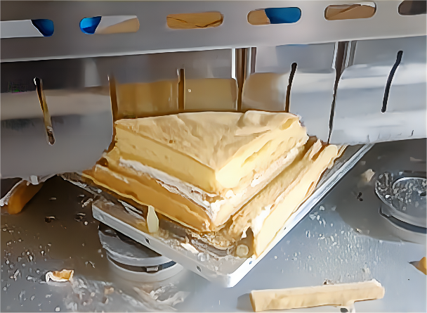Ultrasonic cutting machine uses high-frequency vibration to carry out cutting work. The equipment realizes friction-free and pressure-free cutting mode. Meishun Machinery can provide a complete set of cutting solutions for bakeries of any size, and can customize each machine according to customer needs. This machine is applicable to central factories, cake shops and chain bakeries.